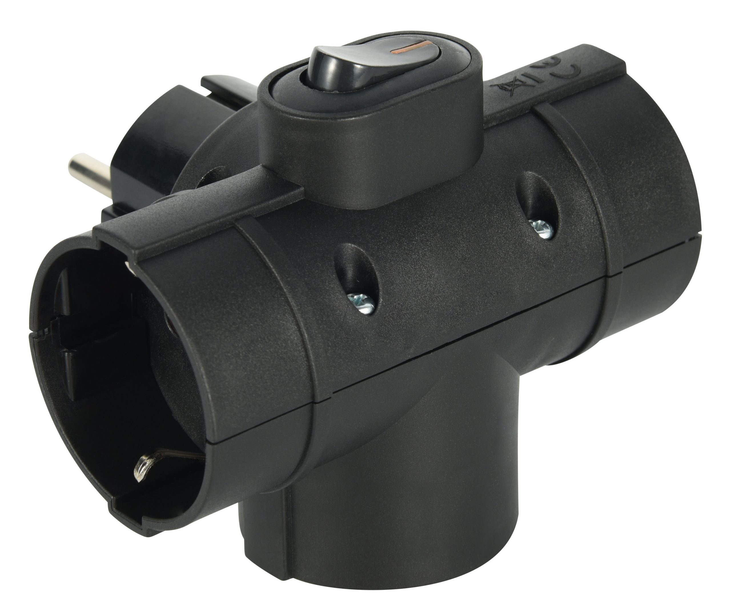 Triple Schuko 16A. adapter with switch. Black. Ideal for connecting three electrical devices intoone outlet. with switch for added safety. Packaging: Box