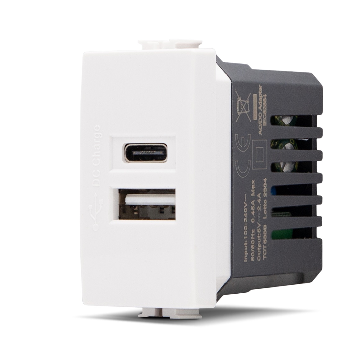 USB OUTLET 5V=2.4A A+C WHITE M81310S. Ideal for charging USB devices such as smartphones. tablets. headsets and other compatible electronic devices quickly and safely. Packaging: Label. bulk