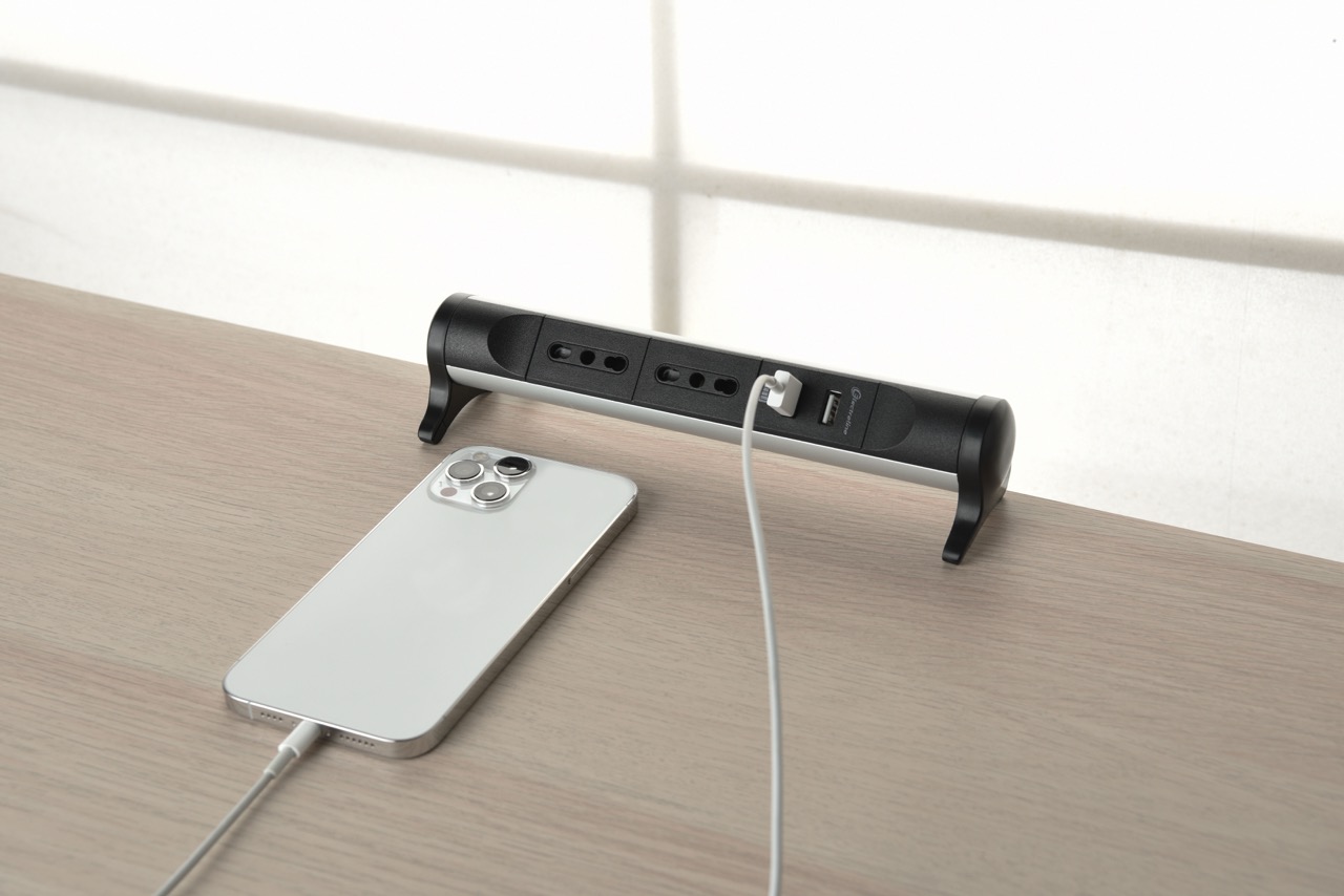 Browse the catalogAlu multisocket. 2 bivalent 10/16A outlets. 2 USB A 2.1A . 2m H05VV-F 3G1 cable. Alu / Black. For offices. conference rooms or home environments to connect and protect electronic devices. Packaging: Hanging box