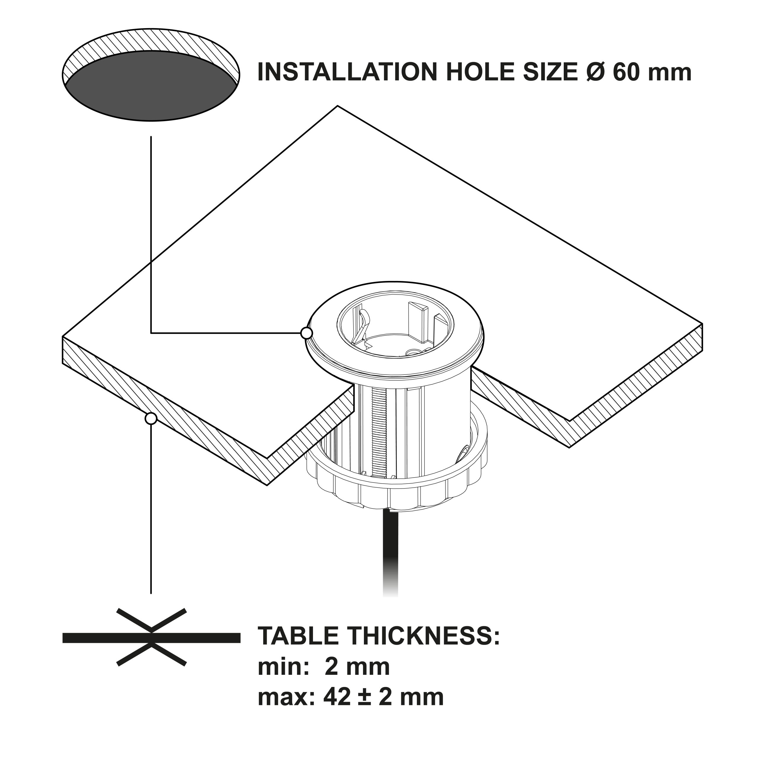 5 PLUG+CABLE DESKTOP OUTLET. Offices. conference rooms. desks. kitchens. studios. allowing you to easily plug in electronic devices. Packaging: Blister