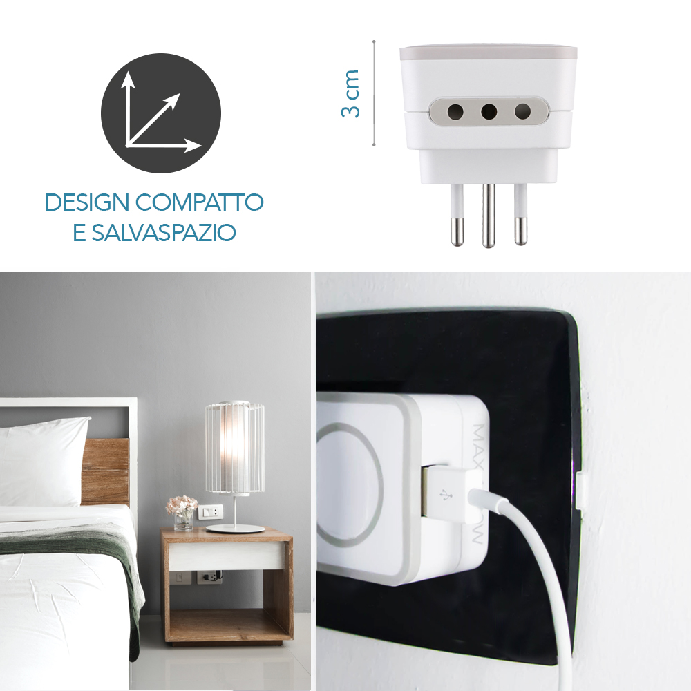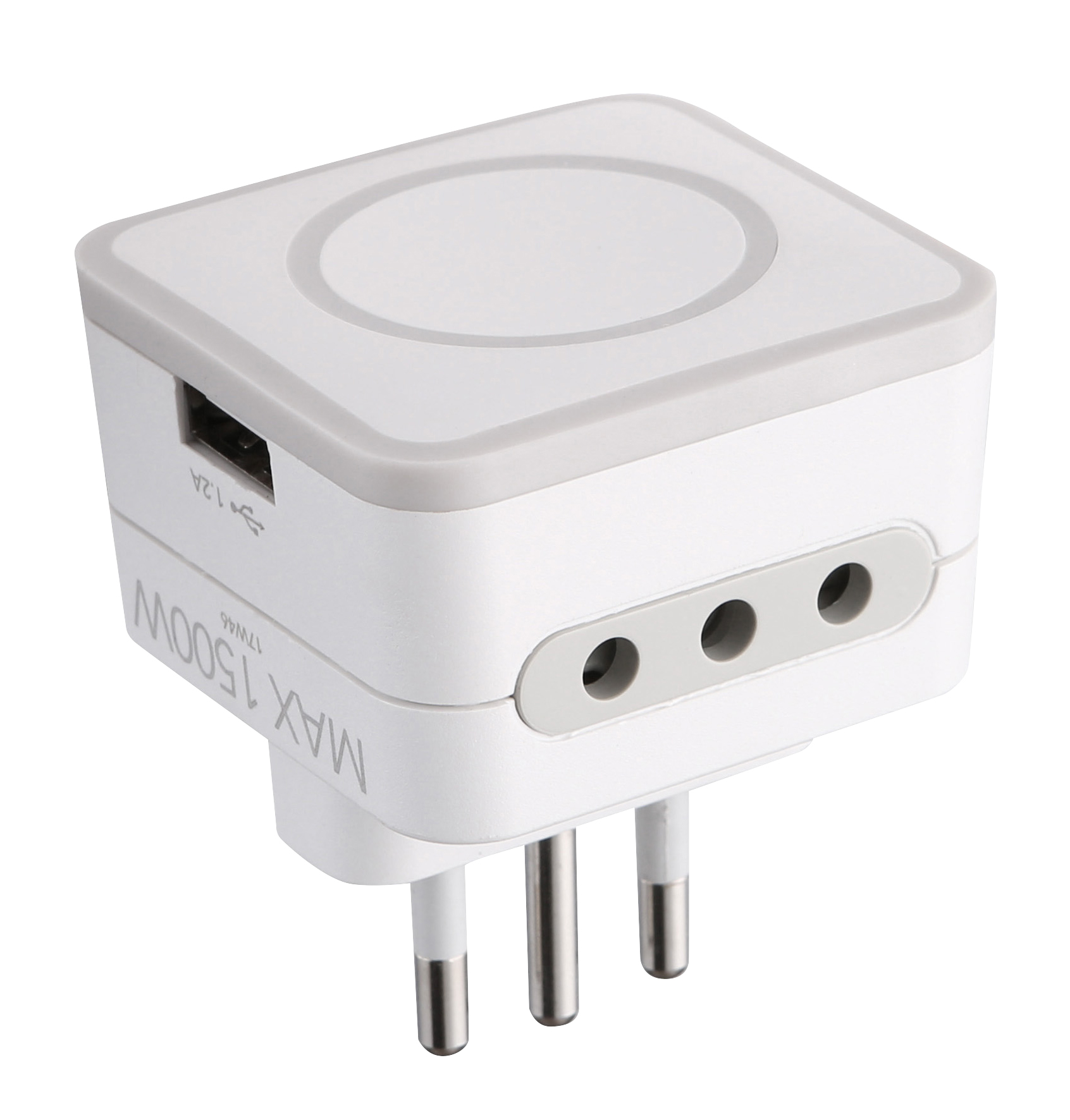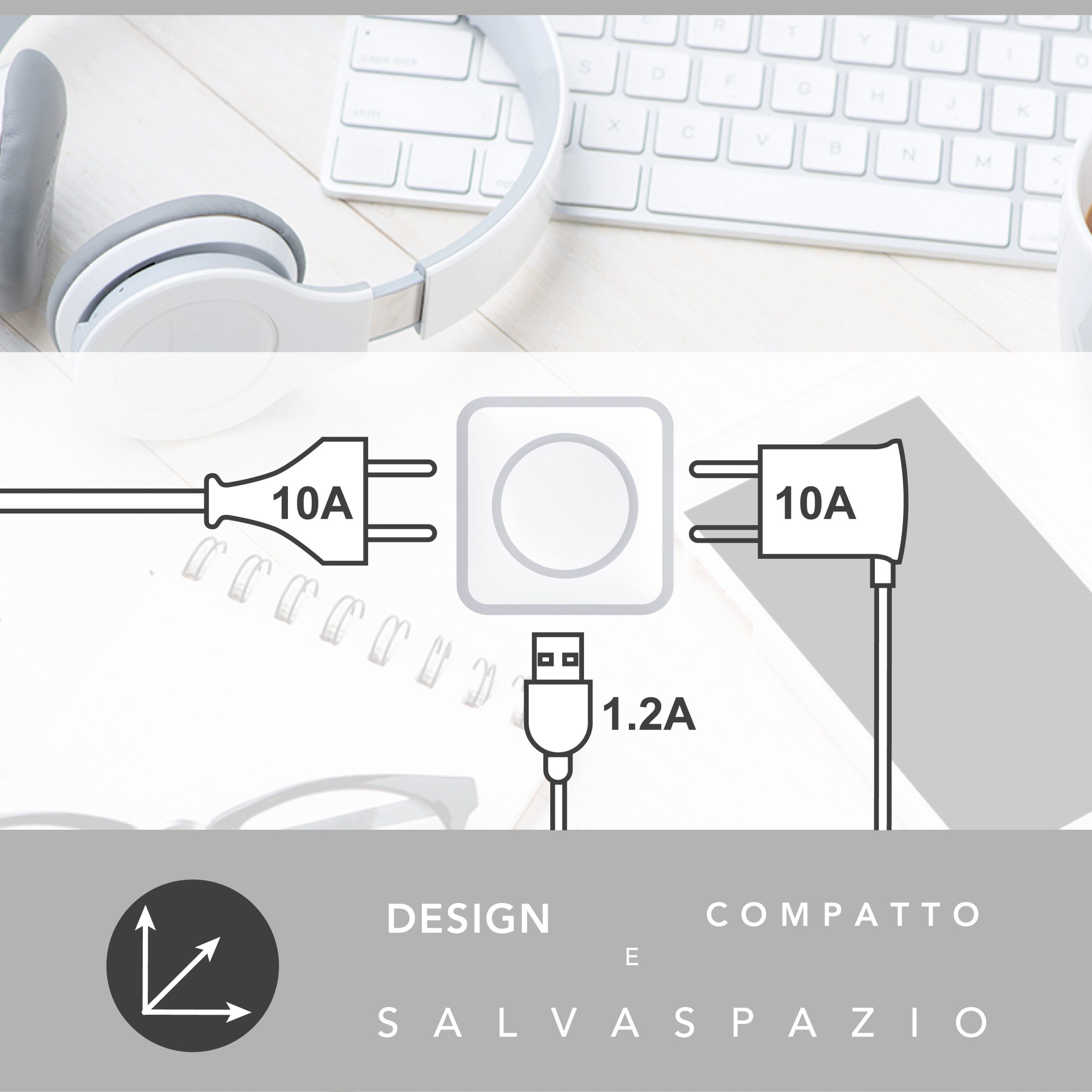 Gummy adapter 2 10A outlets + 1 USB 1.2A. White and gray. Use the product in the office. on the road or at home to charge electronic devices. Packaging: Blister
