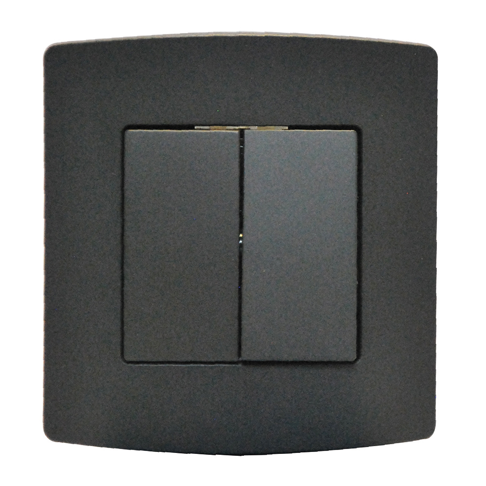 Module double interrupteur V/V avec voyant. gamme Bali. 70x30x70mm. Noir. Emballage : Etiquette.