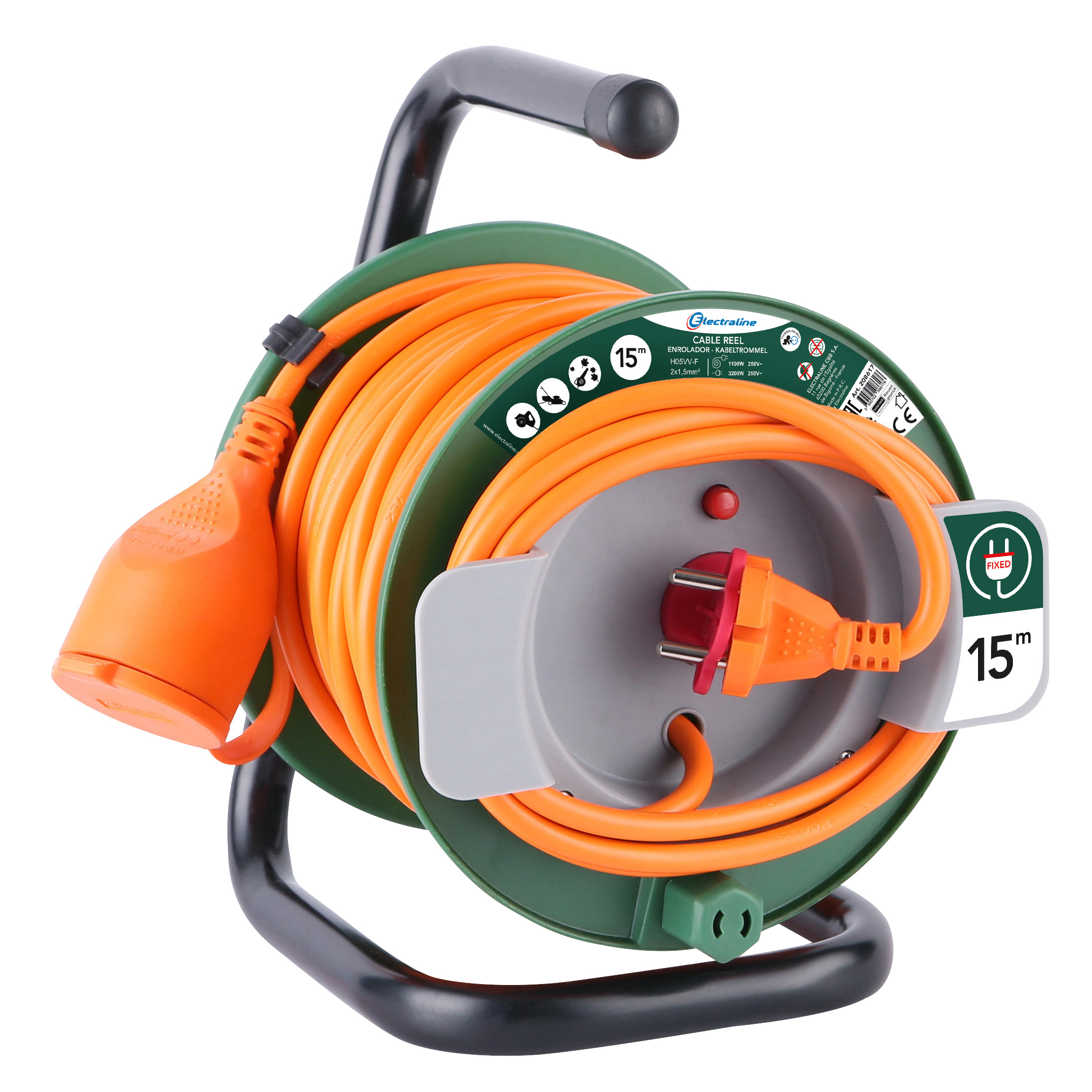 Enrouleur Jardin avec capuchon. 15m. H05VV-F 2X1.5. Green / Orange. Emballage : Boite.