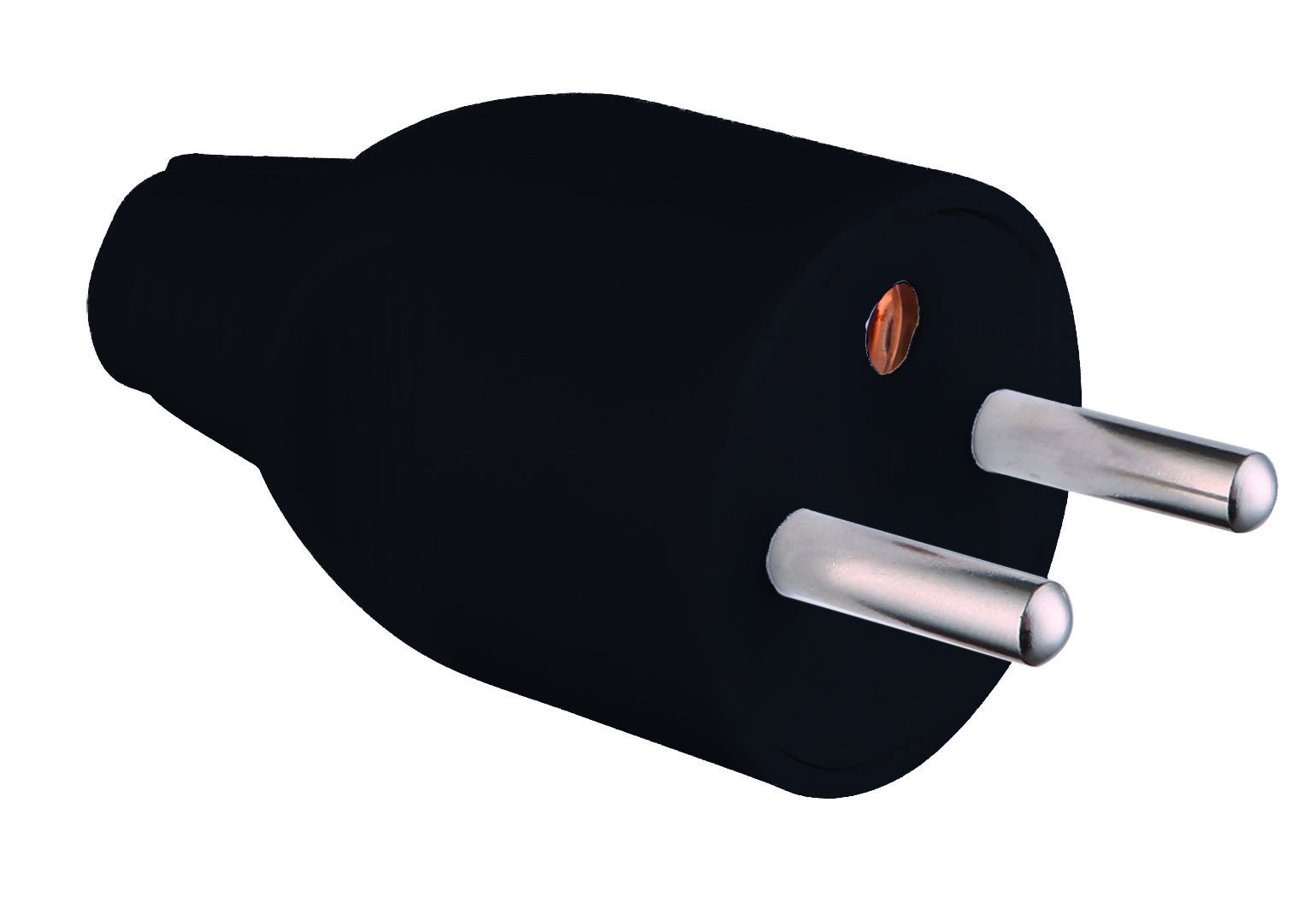 Fiche mâle. 2P+T. 10-16A. Noir. Emballage : Etiquette.