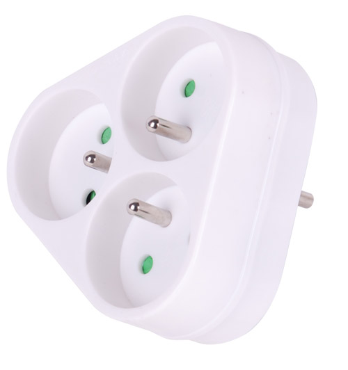 Adaptateur triple USB-A 5.2A 26W. charge rapide. fiche 10A. Blanc. Emballage : Boite suspendue.