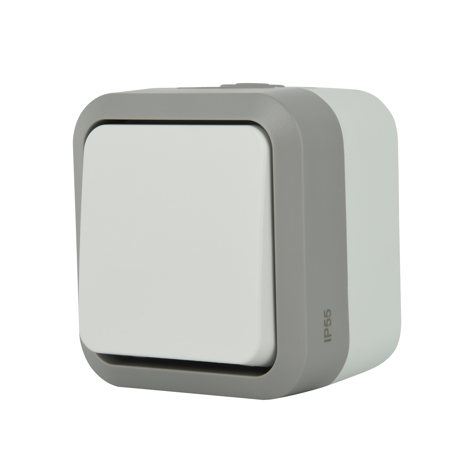 Interrupteur V/V. IP55. gamme Hypro. Blanc / Gris. Emballage : Film plastique. etiquette.