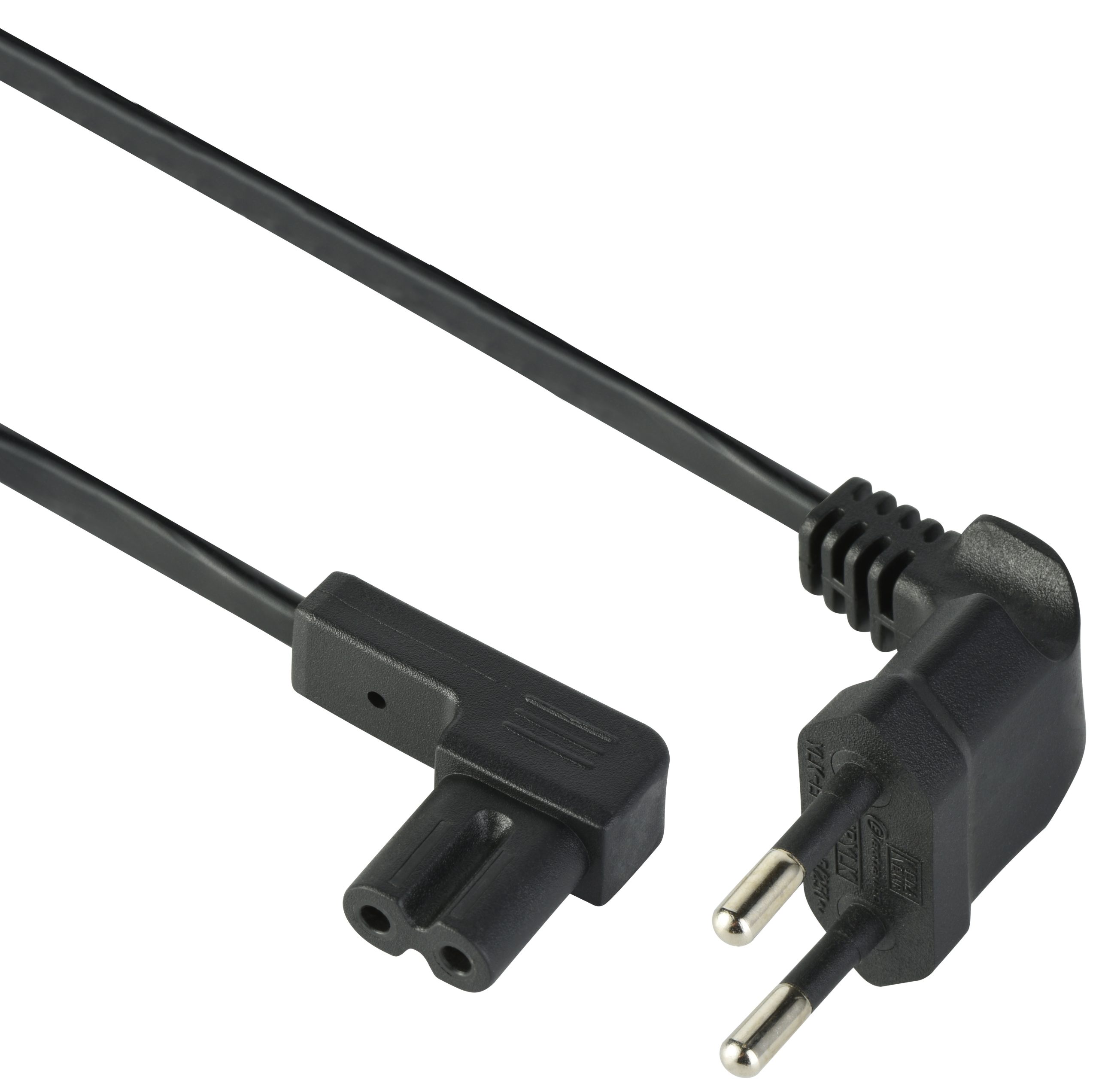 Cable alimentation C7 fiche plate 2.5A pour PC. 1m. H05VV-F 2X0.75. Noir. Emballage : Sachet. Etiquette.