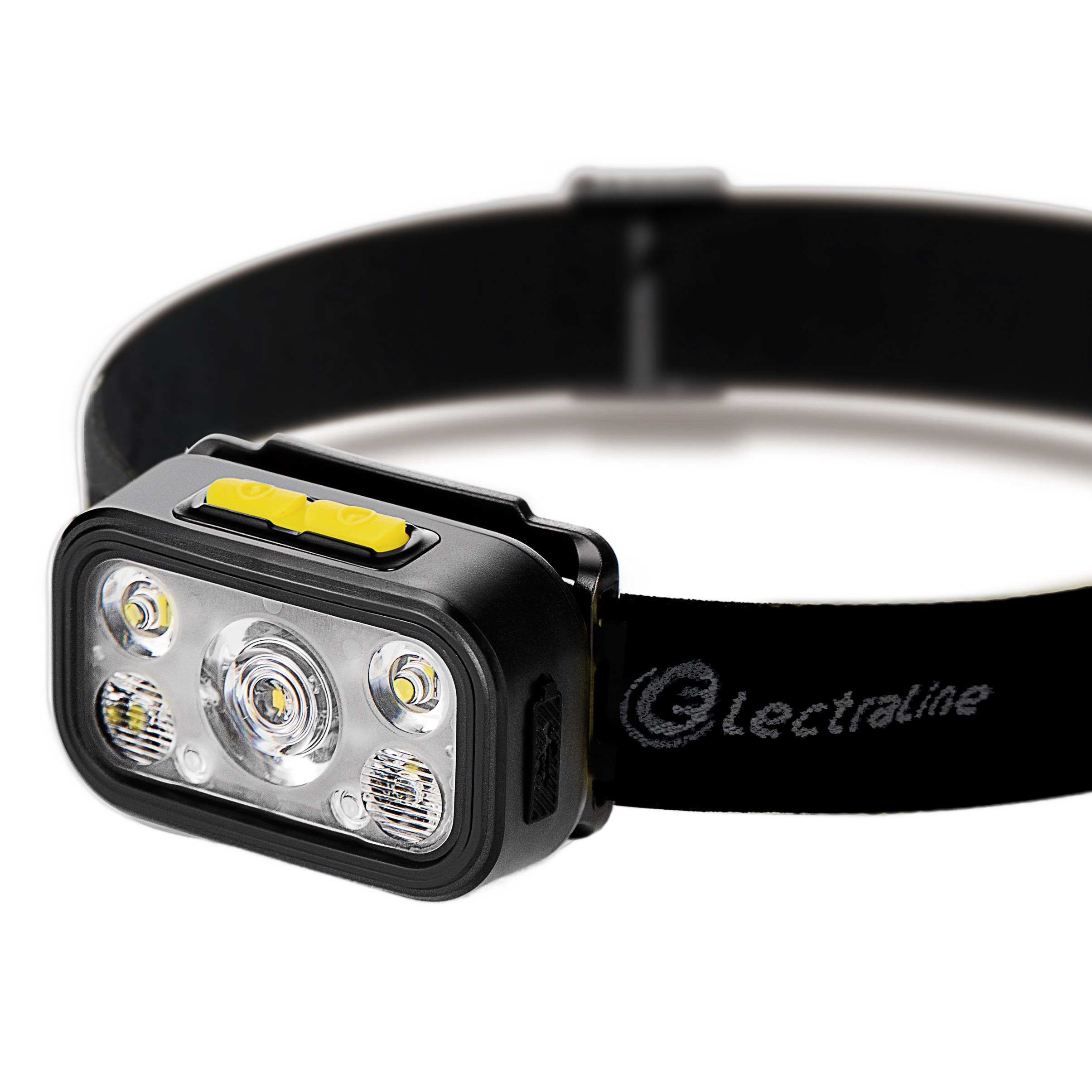 Lampe frontale LED 3W. détecteur de mouvement. 220lm. 600mAh. Noir / Jaune. Emballage : Boite suspendue.