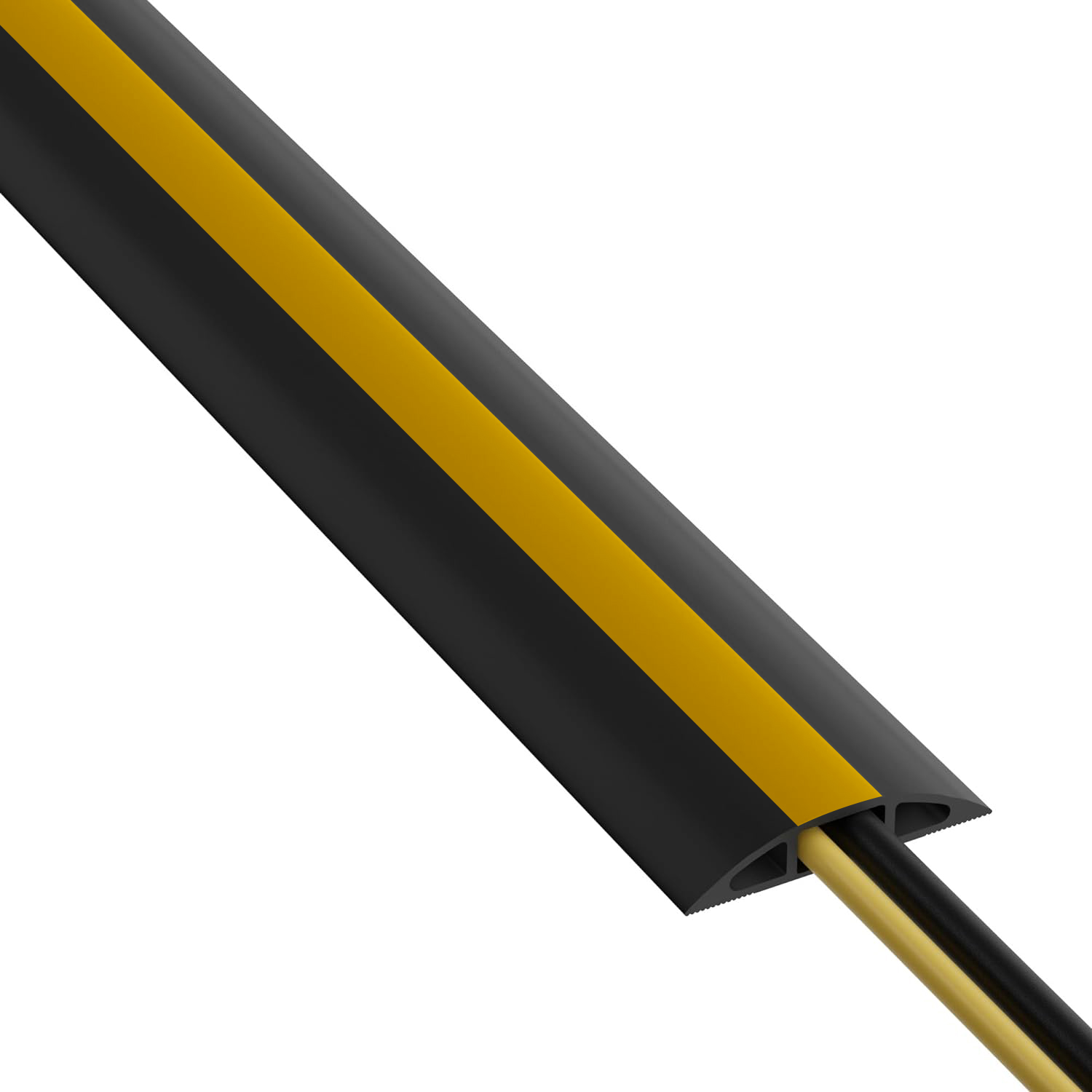 Goulotte caoutchouc pour la protection des câbles. 180x8x1,5cm. Noir / Jaune. Sachet plastique. Emballage : Sachet. Etiquette.
