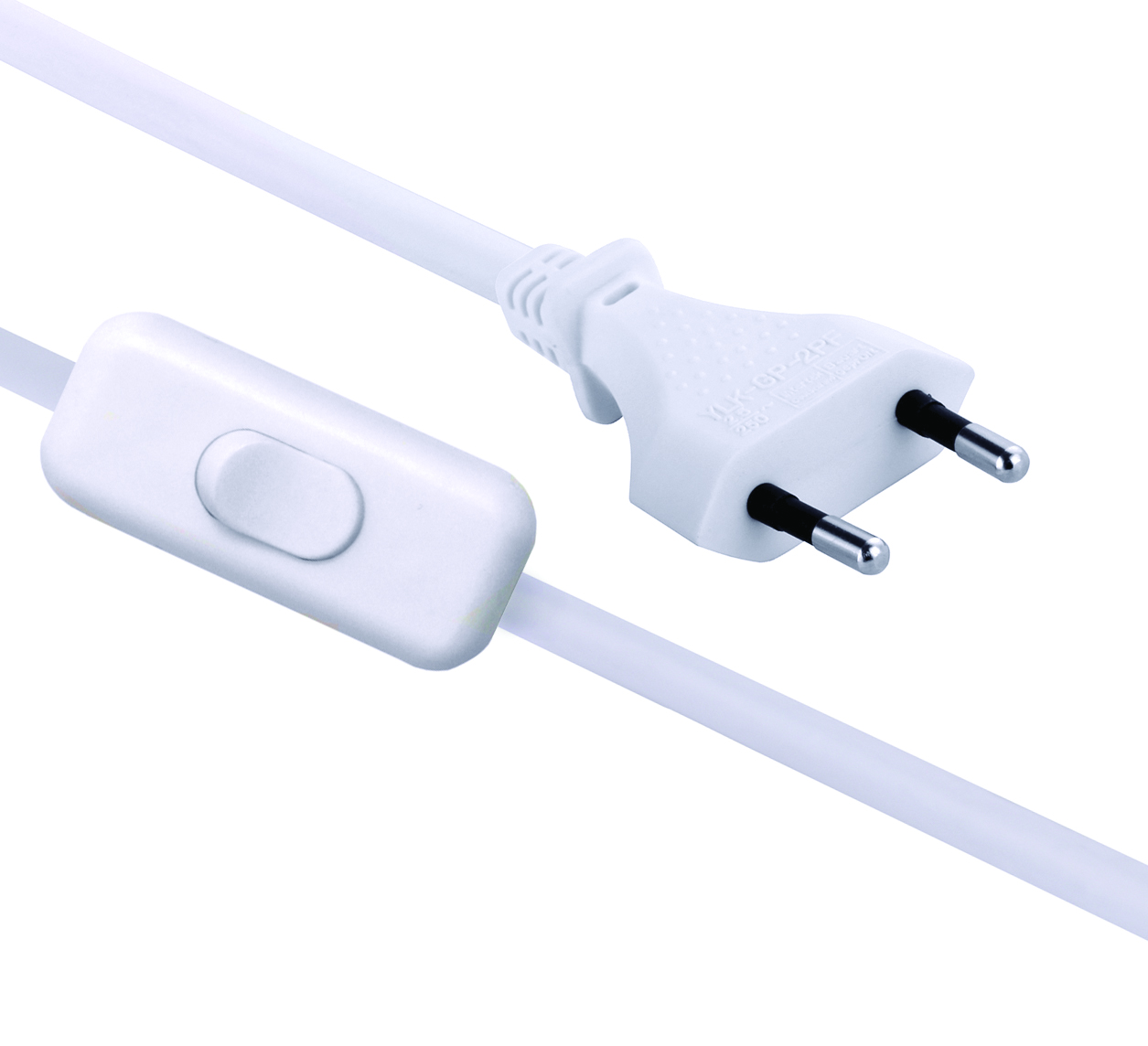 Cordon avec interr.. 1.5m. H03VVCH2-F 2X0.75. 2.5A. Blanc. Emballage : Blister.