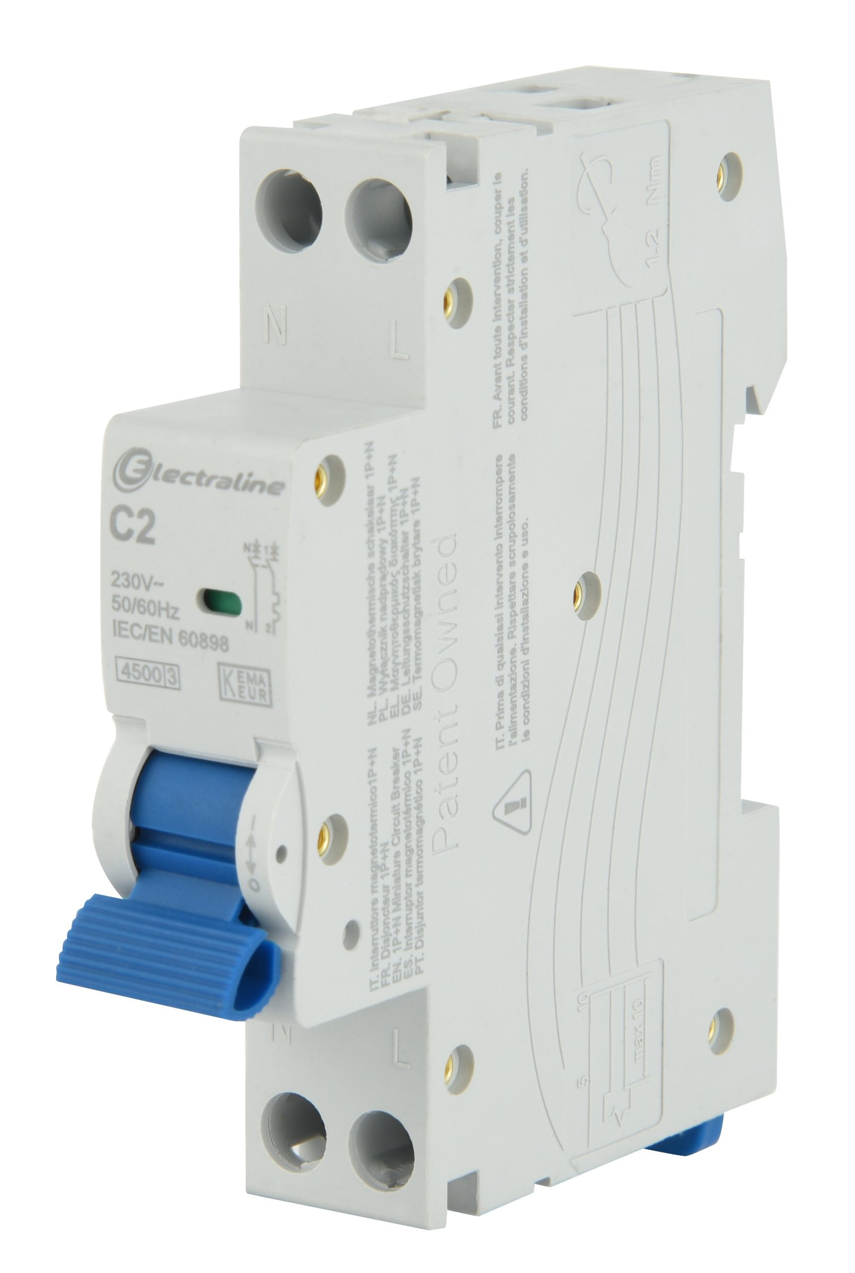 Disjoncteur 2A 4.5kA 1P+N. Gris. Etiquette. Emballage : Etiquette.