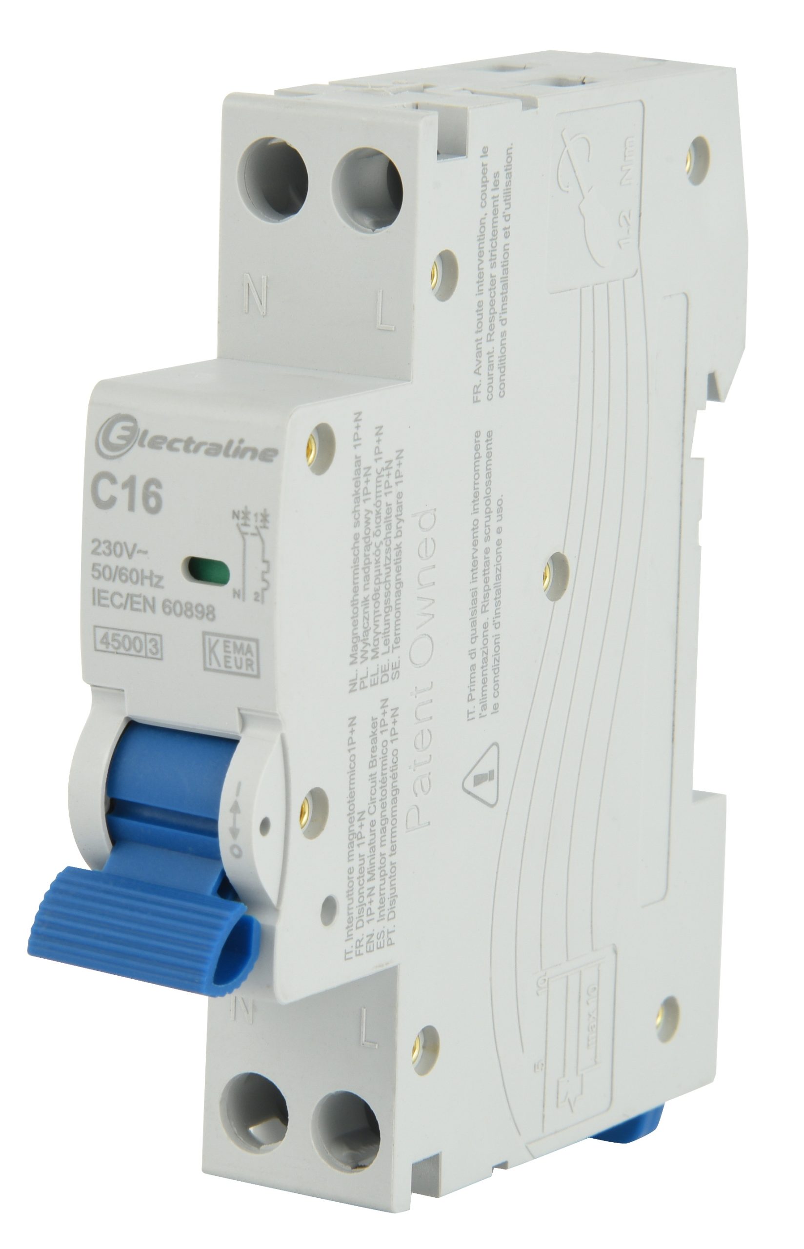 Disjoncteur 16A 4.5kA 1P+N. Gris. Emballage : Etiquette.
