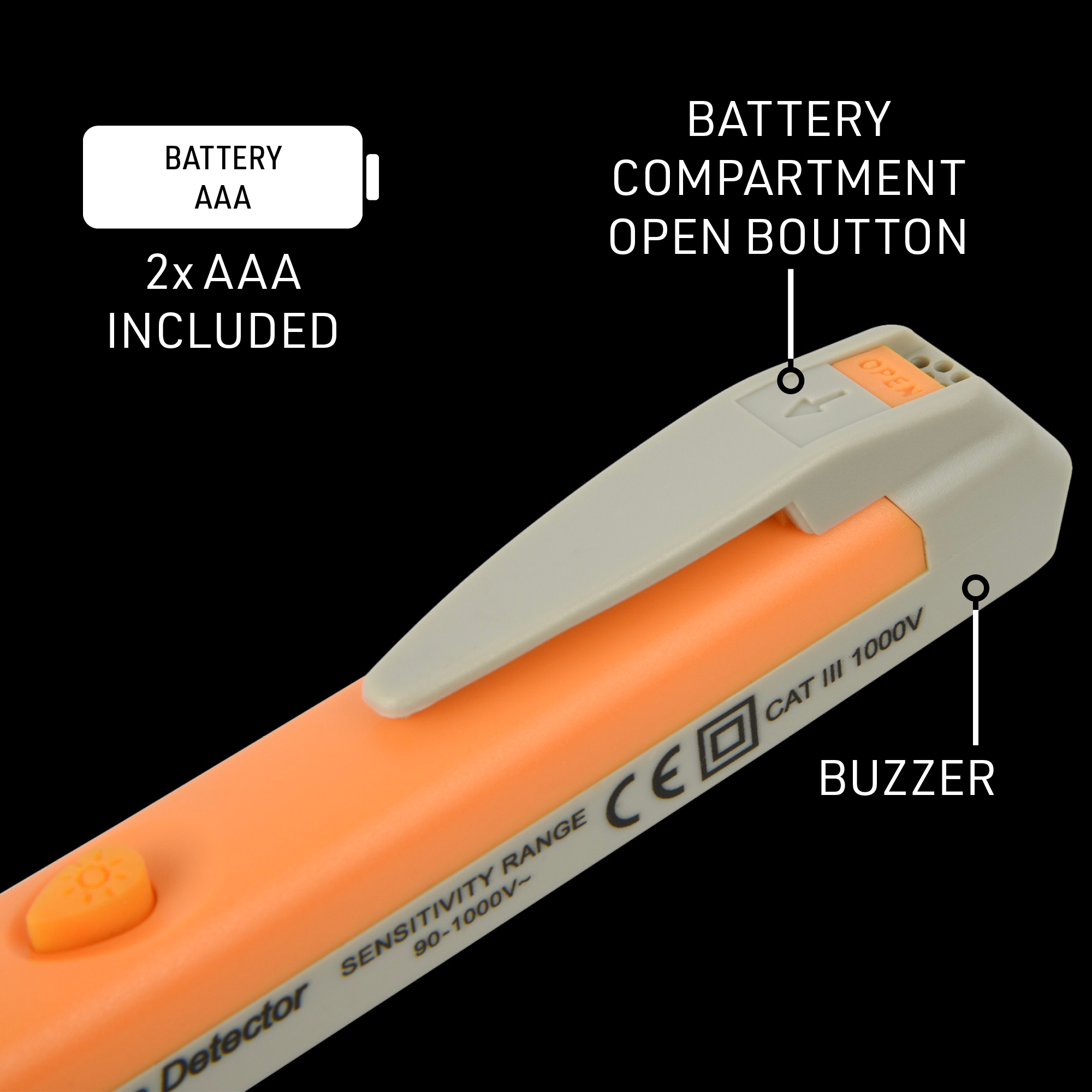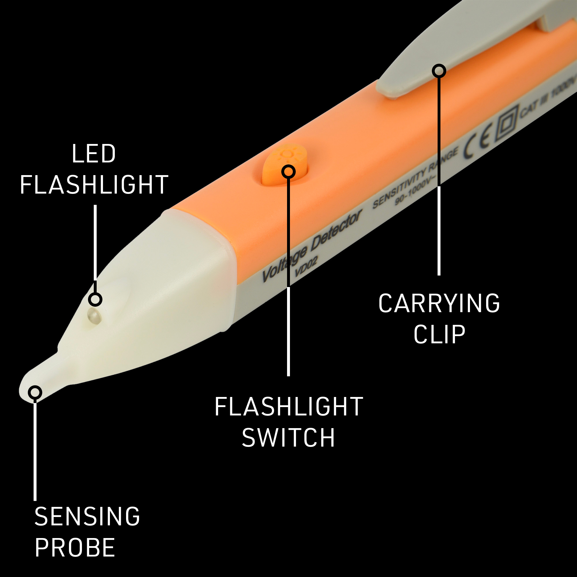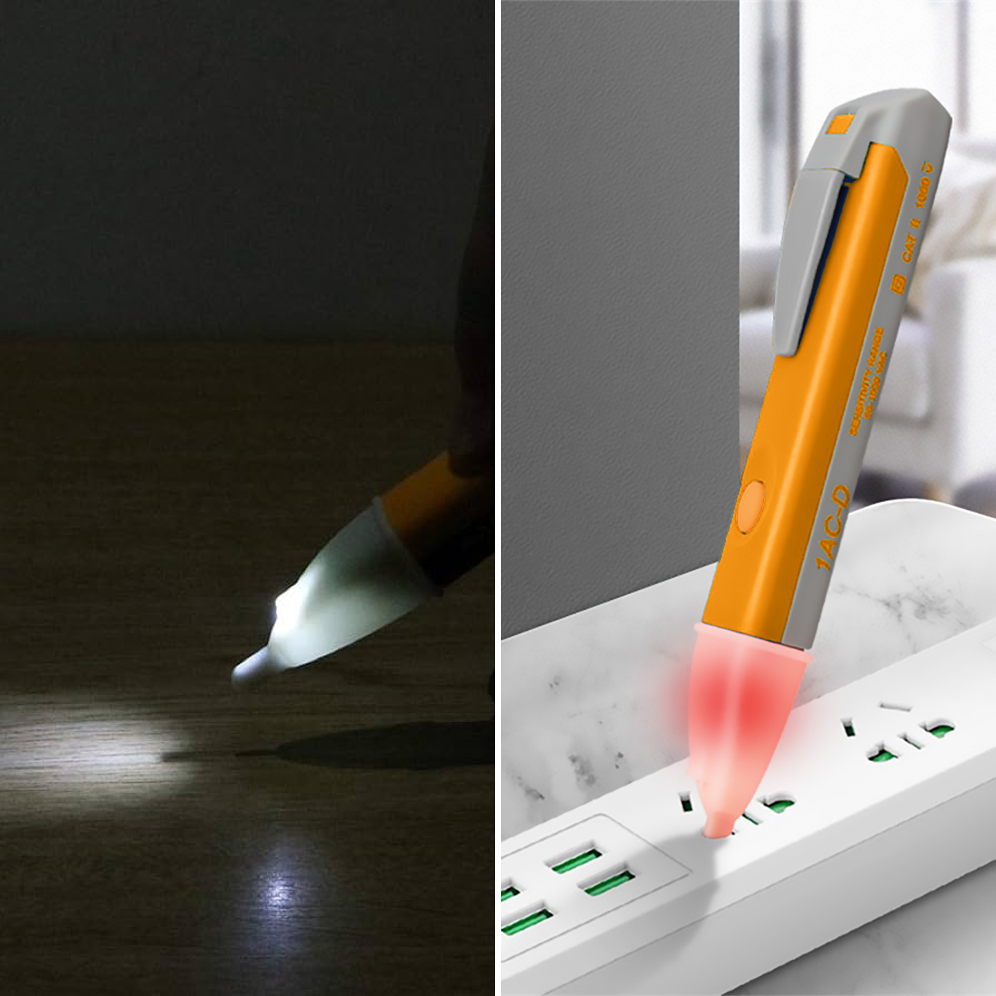 Testeur de courant sans contact. ACV 90-1000V. piles incluses. Orange / Gris. Emballage : Boîte suspendue.