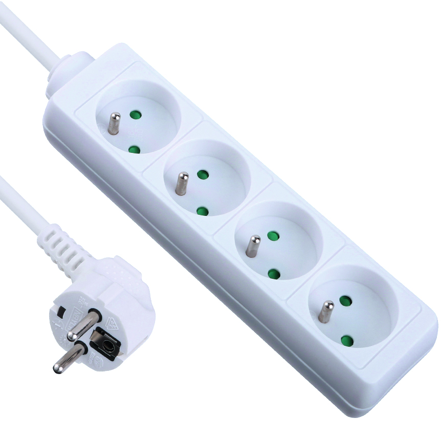 Prolongateur menager fiche plate. 3m. H05VV-F 3G1.5. Blanc. Emballage : Etiquette brochable.