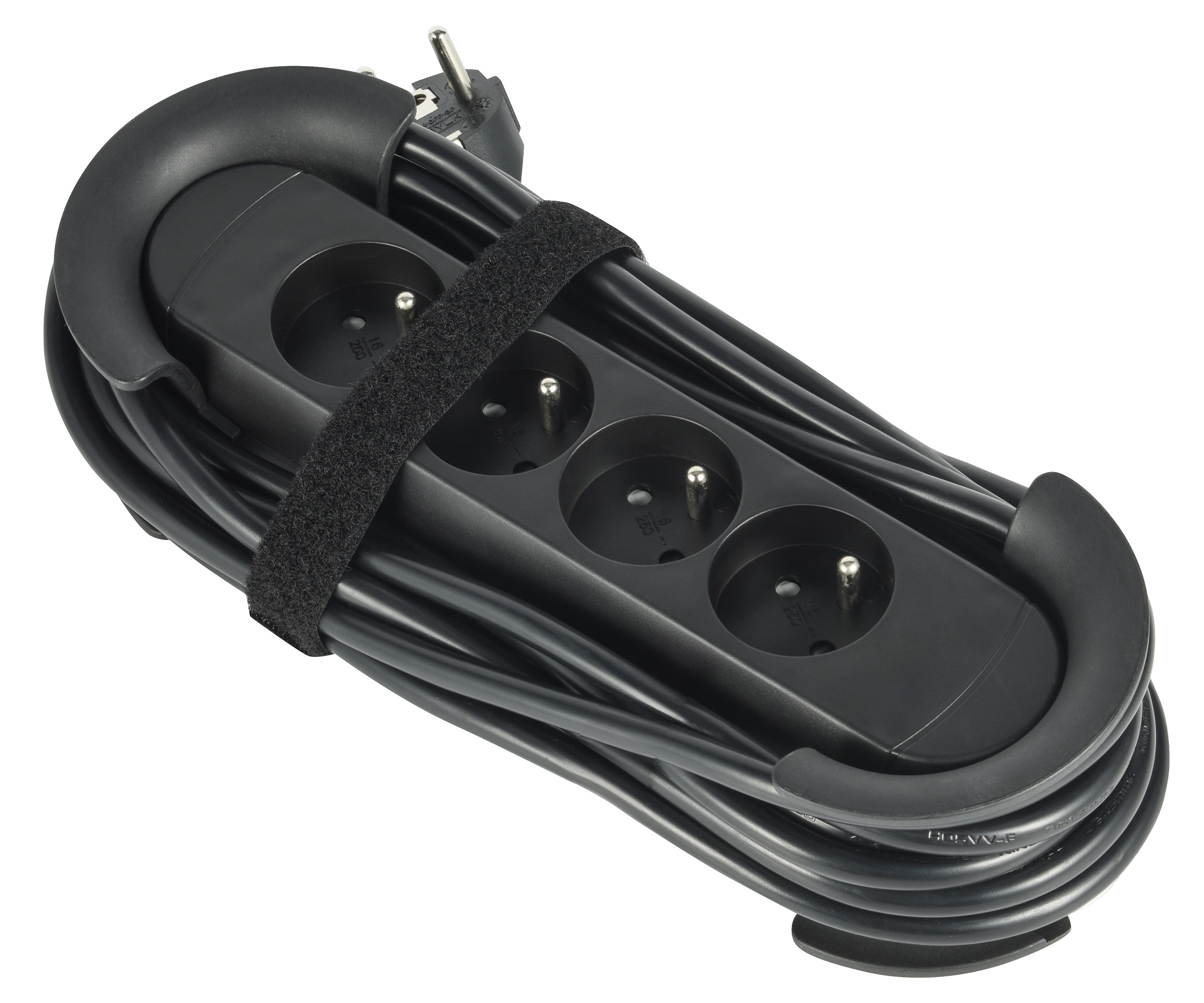 Prolongateur IP44. avec triplite. 1m. H07RN-F 3G1.5. en tetiere. Noir. Emballage : Etiquette brochable.