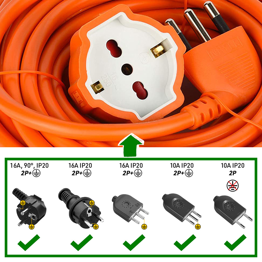Prolunga da giardino. spina 16A. cavo 15m. H05VV-F 3G1.5. Arancione. Utilizzare allaperto in giardini e cortili per allungare la portata dellelettricità in modo sicuro. Imballo: Etichetta