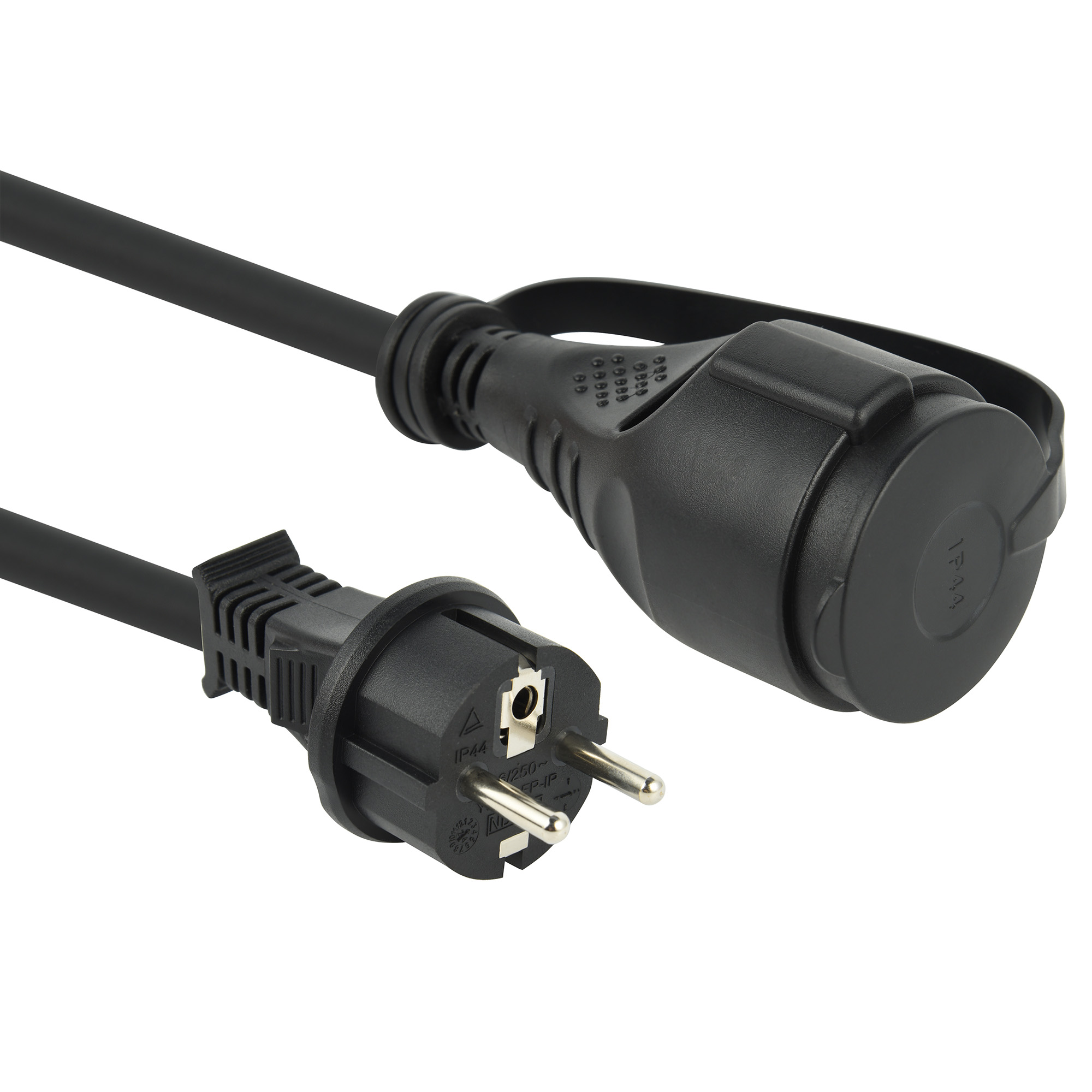 Adattatore CEE per industria con Electralock IP44. 15cm. H07RN.F. Nero . Ideale per luso in ambienti industriali con presenza di umidità. grazie alla protezione IP44 e al cavo resistente. Imballo: Appendibile