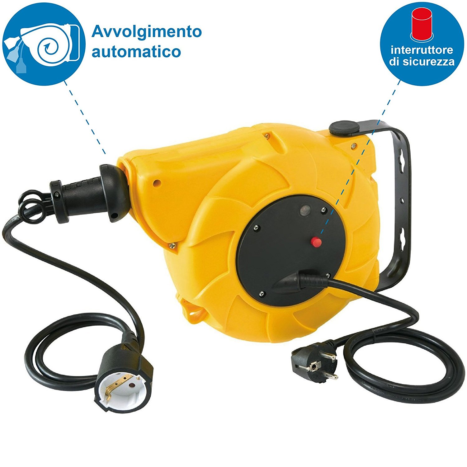 Avvolgicavo automatico; 10m; 3G1.5; presa Schuko. Ideale per organizzare e proteggere cavi elettrici in casa. ufficio o laboratorio con facilità e sicurezza. Imballo: Scatola