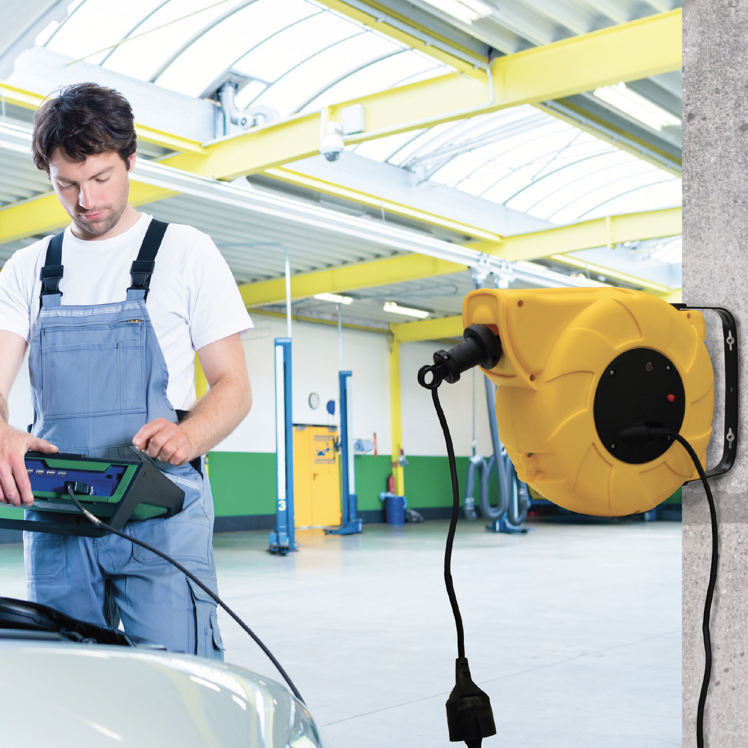Cavo di ricarica DeWalt 11kW 16A. EV TIPO 2 A. 5m. Nero / Giallo. Ideale per ricaricare veicoli elettrici con connettore di tipo 2. offrendo una potenza di 11kW e 16A. Imballo: Scatola