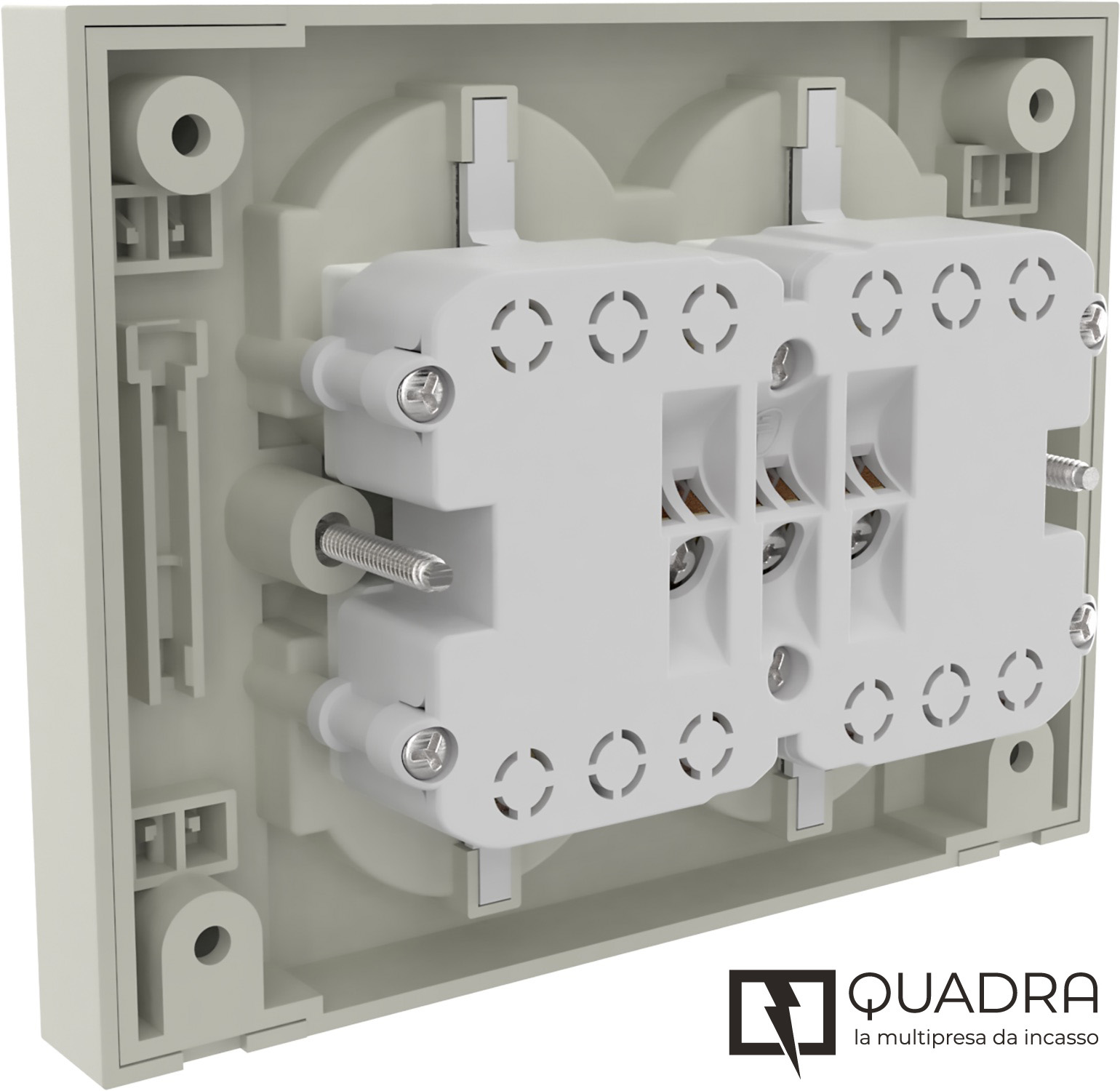 Multipresa da incasso Quadra. 4 prese universali P40. 2 USB-C. Bianco. Ideale per uffici. cucine. camere da letto e sale conferenze. offrendo 4 prese universali e 2 porte USB-C. Imballo: Sacchetto plastica appendibile