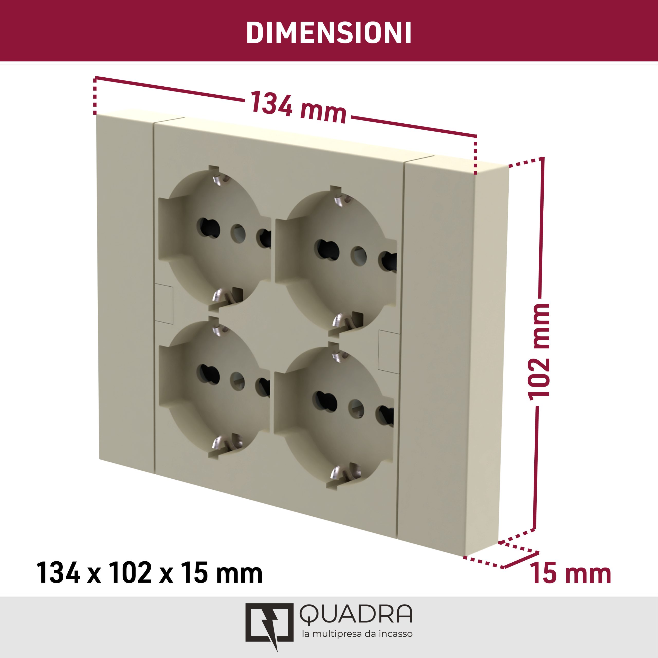 Multipresa da incasso Quadra. 4 prese universali P40. Sabbia. Utilizzare in uffici. cucine. sale conferenze e ambienti domestici per collegare dispositivi elettronici in modo sicuro. Imballo: Sacchetto plastica appendibile