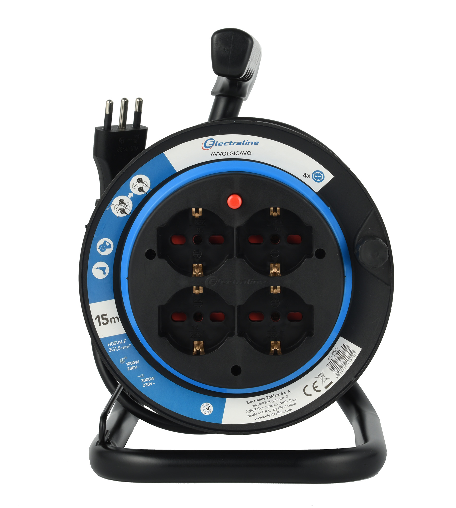 Avvolgicavo Domestico. 4 prese P40 universali. cavo 10m H05VV-F 3G1.5 Nero. Per collegare e distribuire lelettricità in casa. ufficio o qualsiasi ambiente domestico con facilità e sicurezza. Imballo: Etichetta