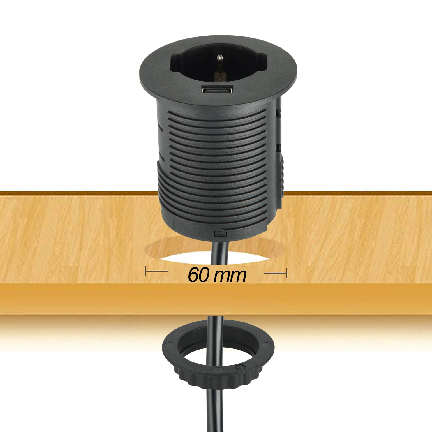 Presa da incasso. 1 presa polivalente. 1 USB 12W. cavo 2m. H05VV-F 3G1. Nera. Ideale per installazioni a incasso. fornendo una presa polivalente. una porta USB 12W e un cavo lungo 2m. Imballo: Scatola appendibile
