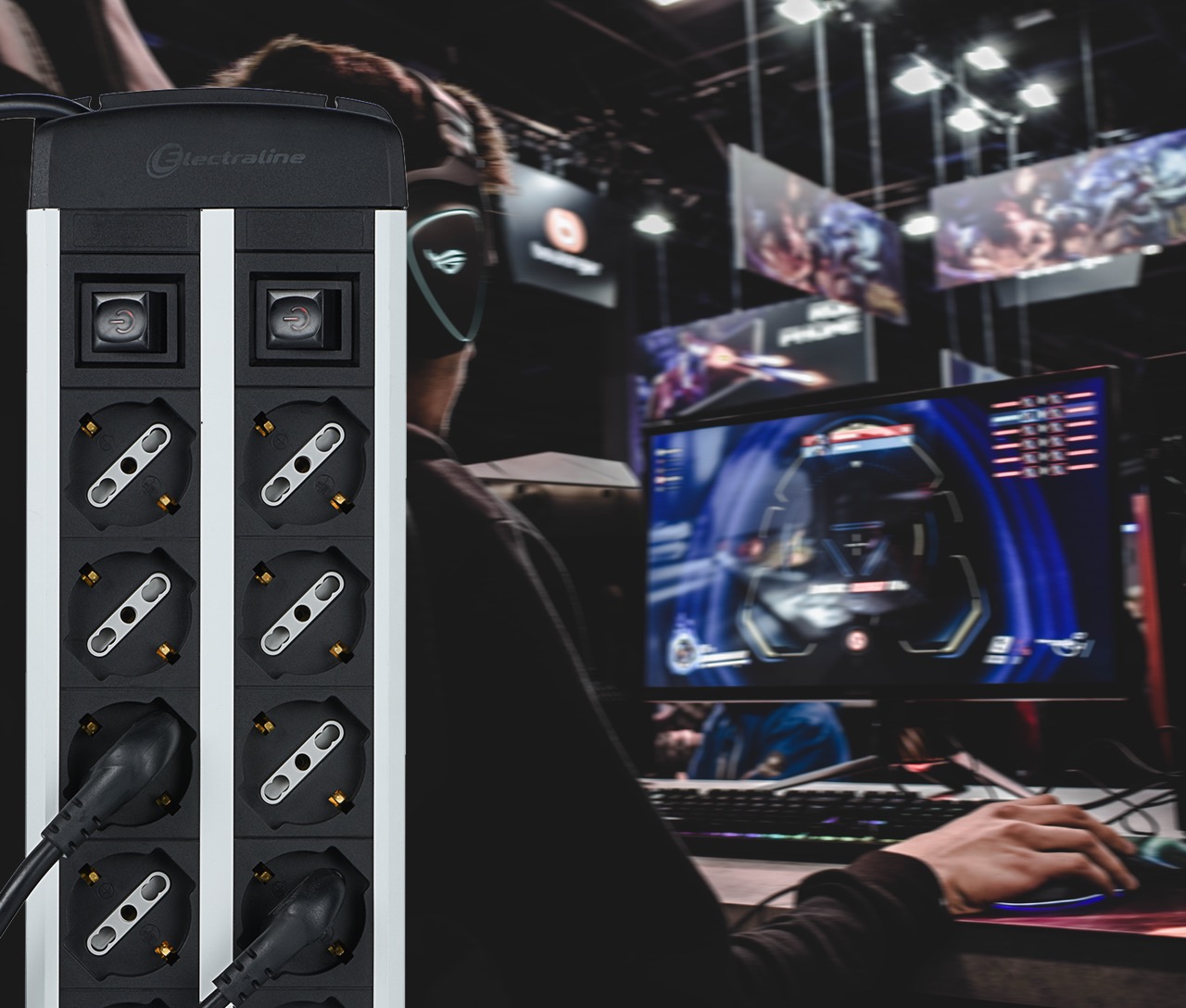 Multipresa Alu. 8 prese P40. 2USB-A. USB-C PD20W. H05VV-F 3G1. 2m. Nero / Alu. Per uffici. sale conferenze o ambienti domestici per collegare e proteggere dispositivi elettronici. Imballo: Scatola appendibile