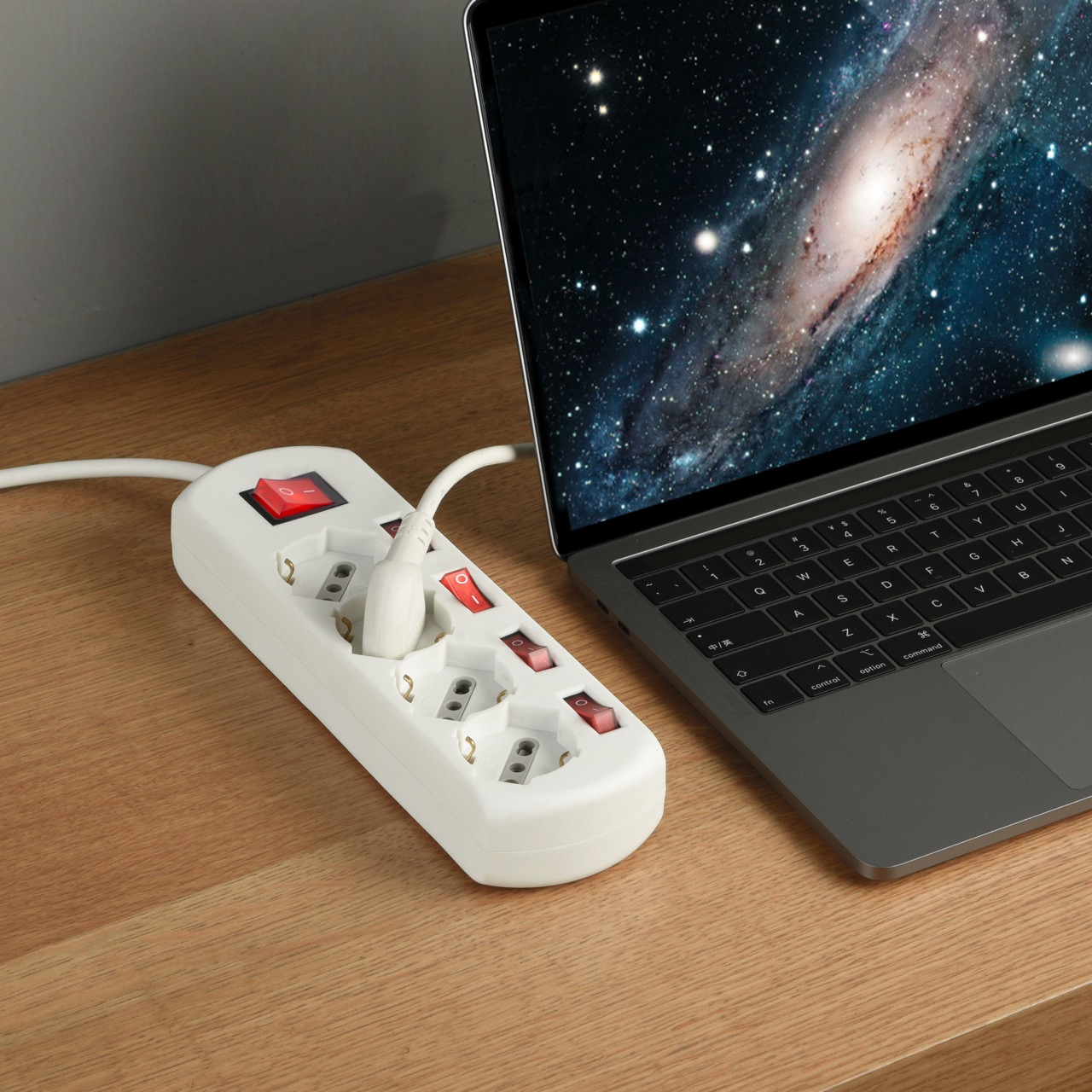 Multipresa 4 prese. interrutore generale e 4 interrutori indipendenti. Cavo 1.5m. H05VV-F 3G1. Bianca. Ideale per uffici. sale conferenze e postazioni di lavoro con necessità di alimentazione e controllo indipendenti. Imballo: Etichetta appendibile