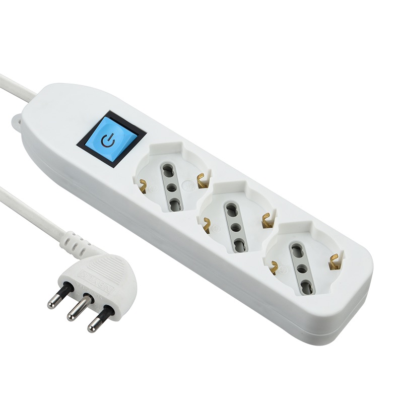 Multipresa 3 prese polivalenti. cavo 3m. interrutore. H05VVF-F 3G1. Bianca. Ideale per uffici. cucine e salotti. offrendo tre prese versatile. cavo lungo 3m e interruttore comodo. Imballo: Etichetta appendibile