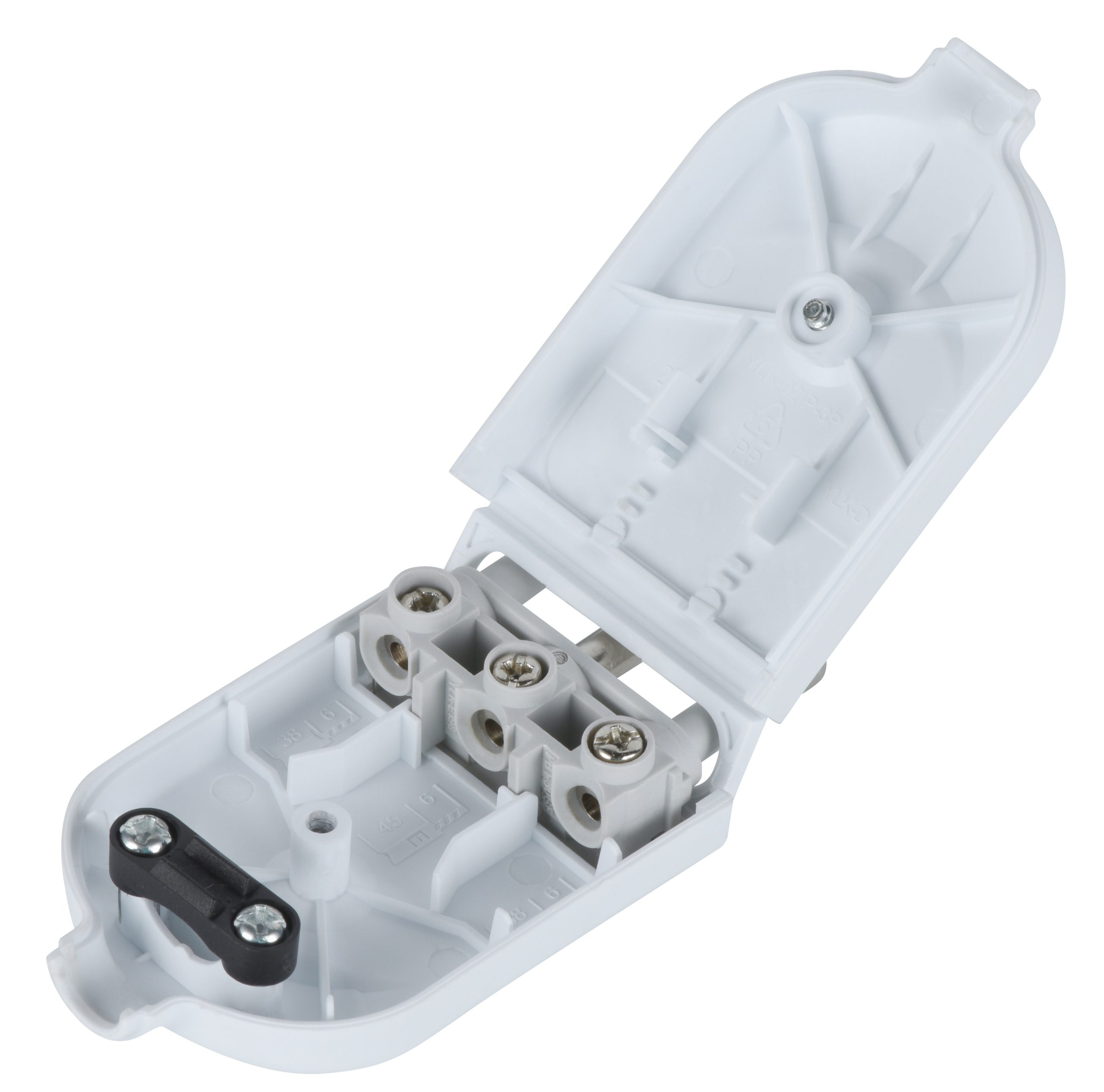 Spina orientabile 16A 2P+T. Bianca. Utilizzare in uffici. abitazioni. negozi per collegare dispositivi elettrici con presa 16A 2P+T. Imballo: Etichetta. sfuso