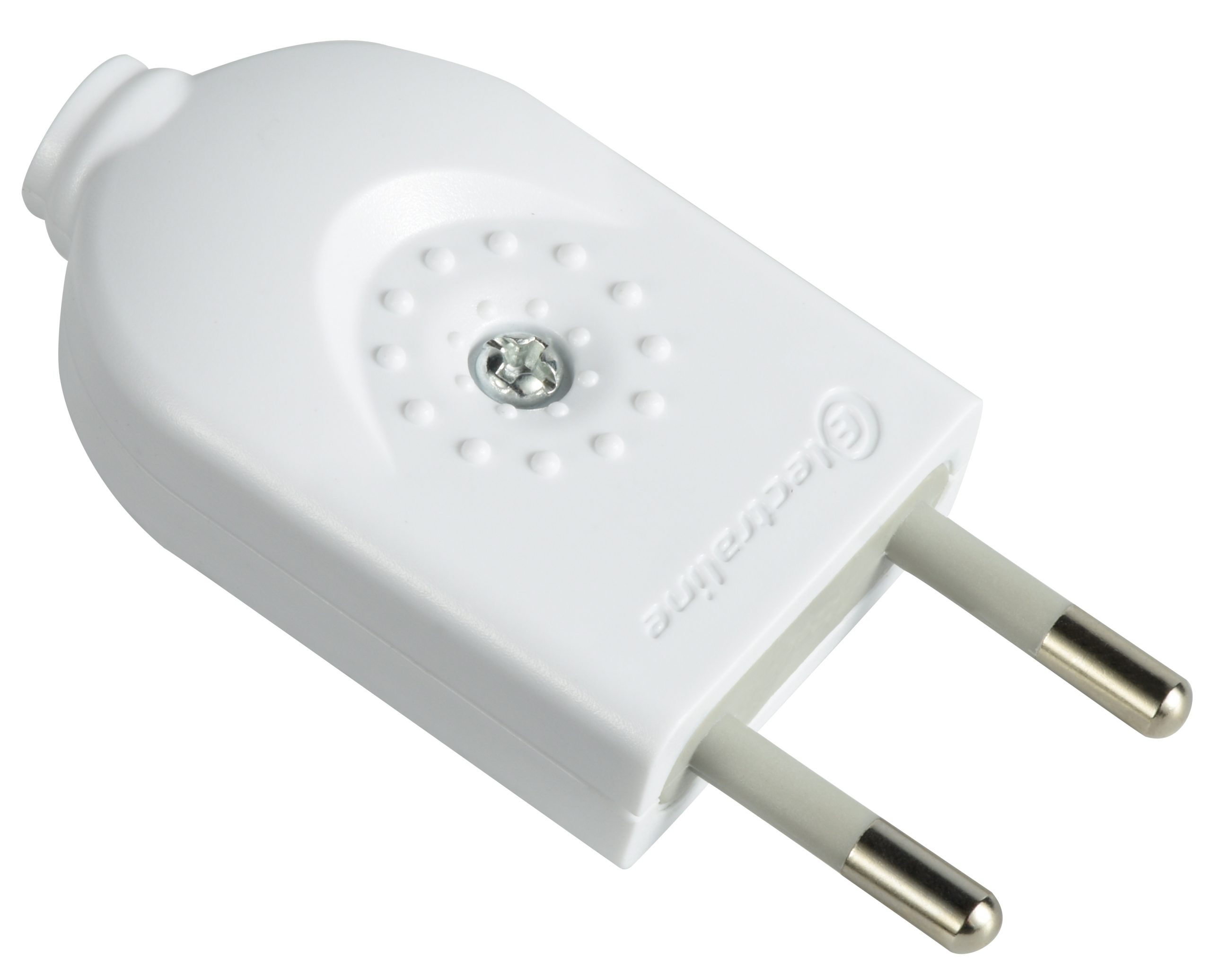 Spina dritta 2 poli 10A. Bianca. Utilizzare in ambienti domestici o commerciali per collegare dispositivi elettrici con spina dritta a due poli da 10A. Imballo: Etichetta. sfuso
